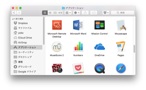 下記画面が表示されたら、「MuseScore 2」のアイコンを「Applications」フォルダにドラッグ。